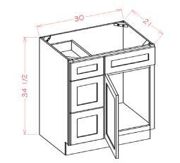 Oxford Sage-Vanity Base: 30"Wx21"Dx34-1/2"H 1 Door, 3 Drawers On Left