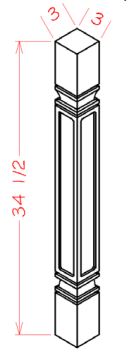 Shaker Cinder - Square Decorative Leg 3"W X 3"D X 34 1/2"H