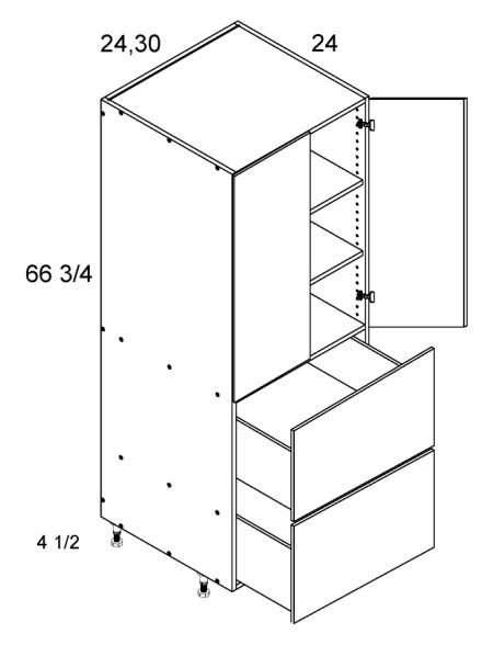 Gloss White - Tall One Door Two Drawer Utility Cabinets - 30"W x 66-3/4"H x 24"D