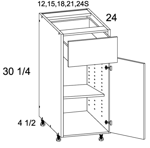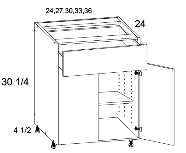 Grey Wood - One Door One Drawer Bases - 24"W x 30-1/4"H x 24"D