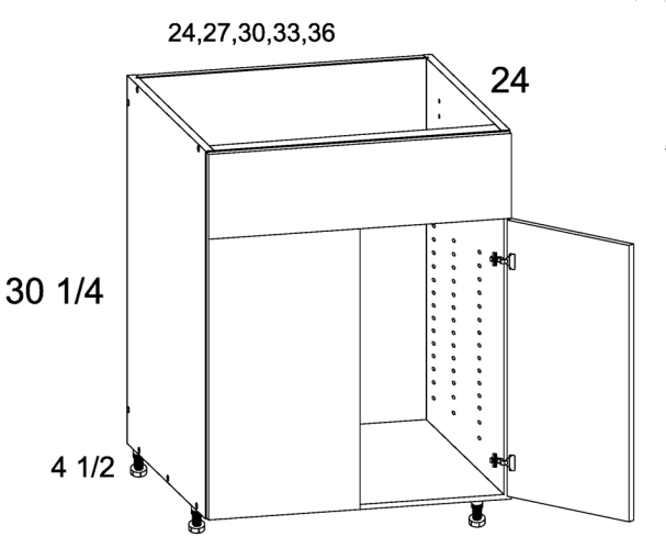 Grey Wood - Two Door One Drawer Bases - 24"W x 30-1/4"H x 24"D